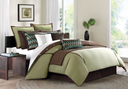 Hampton Hill Alfresco Polyester Jacquard 9-Piece Comforter Set, Queen, Green United states